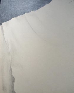 Sommige van haar getekende hemdjes en jurken kocht ze in­ Leip­zig, waar ze een tijdje werkte en dat is te zien. Aan de DDR-knoopjes van kunststof denk ik. En aan lang vergeten fantasie dessins, misschien in synthetische stoffen. Details zijn het, verrassend afgesneden en met potlood getekend. Geen gezichten hier. Kleren, lijf. Alles op het doorschijnende af.  De vrouw zelf is er ook. Ze treedt op in schilderijen in ei tempera. Een meisje met verward haar, gespreide armen en een geheven been. Wat doet ze? Danst ze? Slaapwandelt ze? De witte s­choenen en het motief op de jurk zetten haar buiten de wereld.