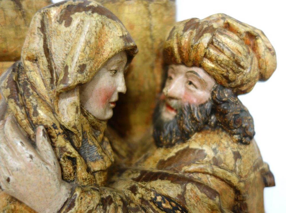 En nu hangt het bij mij, 25 bij 22 cm. Geen idee van maker, herkomst, jaar van vervaardiging. Ik schat zo'n 50 jaar oud.