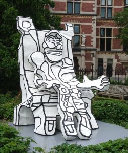 De beelden in de tuin werden waar ik bij was beklommen door twee kleine meisjes, eentje probeerde het beeld 'Calamuchon' iets in z'n oor te fluisteren, maar het gaf geen antwoord.