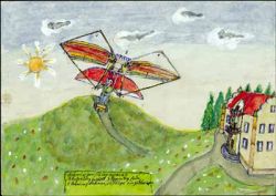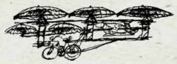 Toen raakte hij bezeten door het idee van een fiets een vliegtuig te maken. Hij tekende en bouwde schaalmodellen, die hij lanceerde vanaf torens of bergen.