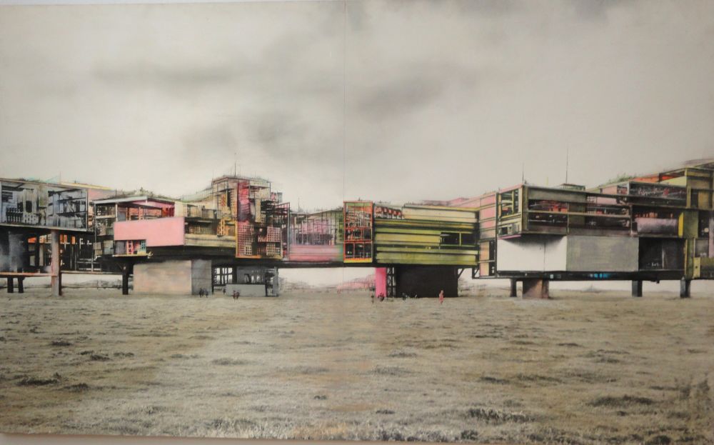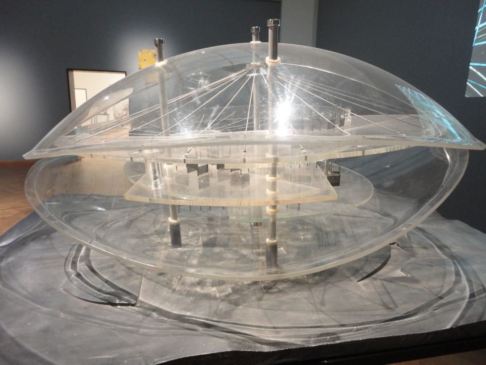 Al zijn bouwsels staan op pootjes. Zodat ze lijken te zweven. Als vliegende schotels of te drijven op water. Verplaatsbare wanden, bruggen, ladders alom. Ruimte is betrekkelijk.