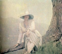 Jacques Henri Lartigue (1894‑1986) begon in 1902 een levenslang fotoalbum van familie en vrienden. Rond 1910 ging hij over op kleur, een zelfbedacht procedé dat het niet volhield - niet reproduceerbaar. Maar wat hij deed was nieuw. Zijn familie en vriendinnen werden model, hij bedacht glamour, regisseerde. Maar tot 1963 bleef het een hobby.