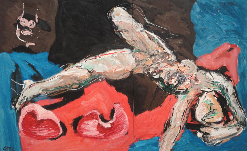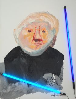 Hij (terwijl hij me met een verbaasd gezicht aankijkt): 'Wat ben je mooi!' Hij zet twee of drie penseelstreekjes op het doek zonder, zo lijkt het, zijn borende blik van mij af te wenden. Dan murmelt hij nog eens voor zichzelf: 'Wat ben je mooi.' Daarna voegt hij er nog deze constatering aan toe, een constatering die hem nog meer verbaast: