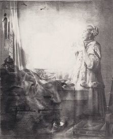 Ik ga de tentoonstelling van hem en Rosa Everts openen, vandaag. En hij verklapte wat daar onder meer te zien zou zijn. Indachtig het credo 'een huis is een mens is een huis' schetste hij me daar in het Rotterdams gewoel het beeld van vier trappen, waarlangs mensenhaar omlaag golft. Ik zag het meteen. Golven haar. En hoorde de stem van mijn moeder die 'wassen watergolven' bestelde bij de kapper.