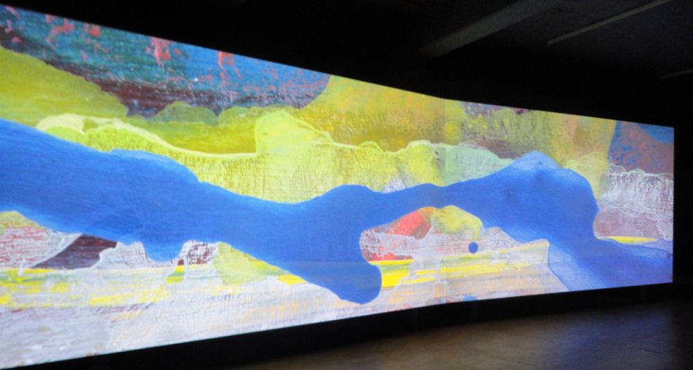 Het titelwerk 'Cycle' is sensationeel. In groot breedbeeld krijg je de lagen van een schilderij te zien, die met verfstreek en al op de loop zijn gegaan. Elke laag leidt een afzonderlijk bestaan. Van links naar rechts trekken ze aan je voorbij, elk in een andere snelheid.