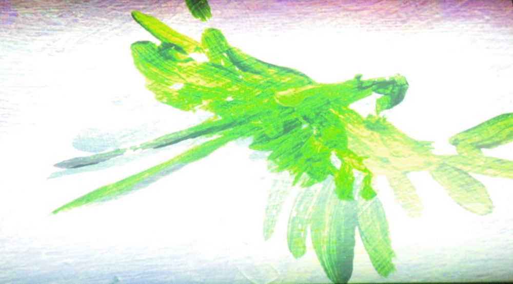 De tweede anatomische schilderles ontstond, zo vertelde hij, toen hij verschil­lende fasen van het ontstaan van een schilderij op dia’s vastlegde voor hij het werk voortzette. Die verschillende stadia bracht hij met overvloeiers samen in filmpjes, zodat je het ontstaan van een schildering van een vliegende vogel kunt volgen. Of een afdaling in het Verdronken land van Saeftfinge, want Jacco Olivier is een Zeeuw, hij komt uit Goes.