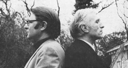 Maarten las me - half improviserend - uit wat hij de laatste tijd schreef en ook al her en der werd afgedrukt. Eerst uit het hoofd over hoe hij voor 't eerst, zesentwintig jaar oud, werd opgenomen in de inrichting Endegeest, in zijn ogen 'einde van de geest'. Hij was 'gek, wild, woest en ontstuimig', wilde Eva slachten, de poes slachten. Daar, op het kasteeltje Endegeest ontdekte hij dat Descartes daar had gewoond, en dat hij wandelend over zijn landgoed van veertig hectare zich afvroeg of hij wel bestond. Hij twijfelde, 'dubito', en toen kwam 'cogito ergo sum'.