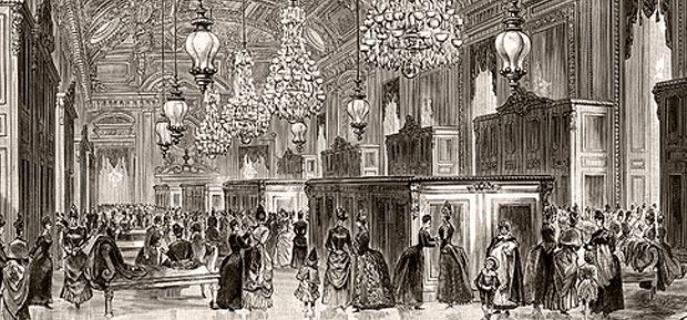 Ach de korsetten! 'Van zwart satin de laine, gestikt en met gekleurde waaiers, bovenaan geboord, voor echt balein wordt ingestaan, gekleurde veter. 18 Francs.' En dan de 'Engelsche laarsjes, geregen, mat chevreau en genaaid, kurken zolen, chagrijn, leêren hakken, F 7.75.'