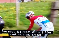 Kort voor de eindstreep bleef hij langs de weg staan met een kapotte fiets. En haalde de achterstand niet meer bij. De Ronde van Vlaanderen in de zon, dat feest van wielertaal, kleurige shirts, kasseien, betonplaten en landschappen met z'n kerkjes, kerkhoven en kasteeltjes waarin heel het land elk jaar zichzelf viert.