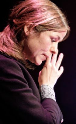 En dan barst hij los, de voordrachtskunstenaar, de nieuwe messias. Met regels als: 'De straat torst haar lot verdoofd./ Gekrijs slaat steil uit haar keelgat./ Poezele taxi's met opstaande stekels/ en pezige koetsen stremmen haar strottehoofd. Voetgangers - feller dan tering/ slopen haar borst plat.