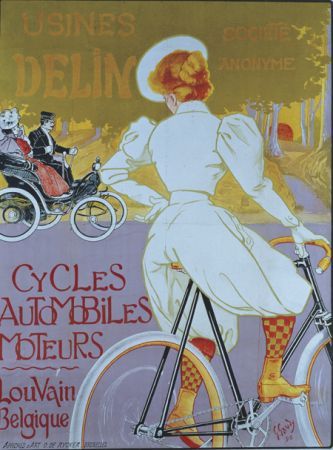 Vervoersexpert Wim Bloemendaal schrijft nav. gisteren 'De affiche van de Belgische fiets- en automobielfabriek dateert van na 1899, omdat de Delinfabriek pas in 1899 haar automobilistische activiteiten begon en in 1901 al werd overgenomen. De afgebeelde auto werd in 1899 en 1900 gefabriceerd. De dame op de fiets is gekleed in de mode van rond 1900 en niet in die van 1880, ook de fiets met luchtbanden waarop ze zit, is van rond de voorlaatste eeuwwisseling.'