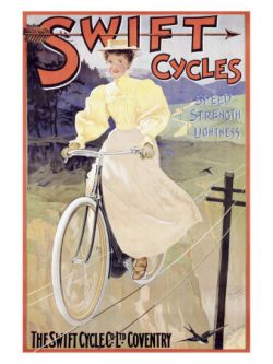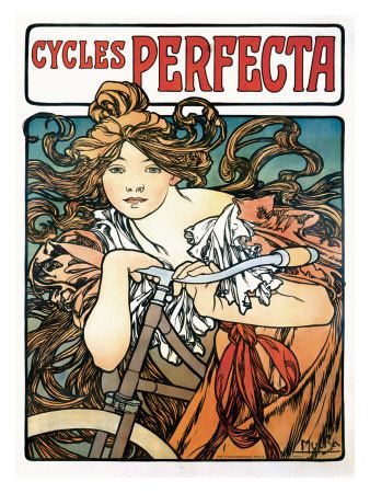 Nu is Walter Benjamin niet heel helder in de datering van zijn observaties van de Parijse fietsmode. Zijn waarnemingen maken inderdaad eerder de indruk te slaan op wat rond 1900 gebeurde dan in 1880. Daar past het affiche dat ik er bij vond ook.. Rond 1880 reed men nog op fietsen met een groot voorwiel en een klein achterwiel. Wim noteert ook: 'Fietsen hebben veel bijgedragen aan de vrijmaking van de vrouw, hier was voor de eerste keer in de geschiedenis een voertuig waarop zij zich alleen kon voortbewegen en dat gebeurde overal.' Daar heeft Benjamin het niet over. En ik denk, elegance en emancipatie inéén, wat wil je meer?