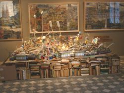 Willem van Genk wist vast ook wat ik van mijn Oom Bob leerde. Nog tot rond 1960 zakte de spanning in het Haagse lichtnet een fractie als er op het station een elektrische locomotief optrok. Dipje in het licht van de schemerlamp. En raad eens wat Oom Bob zei. PS. De Van Genk-maquette en drie van zijn schilderijen zijn te zien op de tentoonstelling ''Schets en schim'' in Gent. Zie eerder..