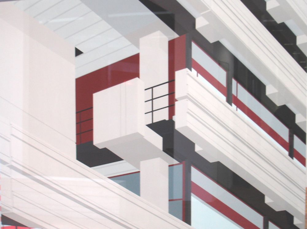 Nog in de Prinsenhof in Delft wezen kijken bij 'Contour'. Het eigentijds exposeren. Je loopt door de bekende zalen met kraakvloeren, langs het gat waar de kogel van Balthazar Gerards insloeg. Mijn vader zei eens: 'Dat was heus niet zo'n grote kogel, dat gat werd groter door de wandelstokpunten van buitenlanders.' En zo losjes temidden van de bekende oude dingen hebben ze dan moderne kunst neergezet. En wat gebeurt er dan? Jawel, die 'gaat een relatie aan met de belangrijkste kunstobjecten uit de permanente presentatie.'