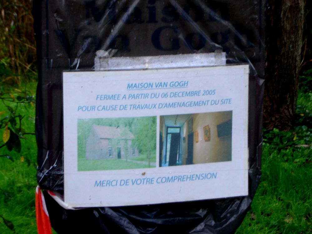 De woorden komen van ver, maar hier herkrijgen ze hun betekenis. Waar eens priesters heersten en fabriekseigenaren. Maar de katholieke complexen vallen in, de mijnen zijn dicht. Werkloos ben je hier. Waar woonde hij? Ik vraag het bij de sigarenwinkel in het centrum. Oh, Fan Kok bedoel ik, dat is rechtsaf en dan na 200 meter links. Weinig maakt moedelozer dan de aanduiding 'deux cent mètres'.Dat kan namelijk alles zijn tussen om de hoek en pak maar liever de auto. Lopen, besluit ik. In de voetsporen van Vincent. Nu pas zie ik de monumentale mijnwerkerslamp, op de rotonde. Het gaat harder regenen. Niemand op straat. Doorweekt bereik ik het huisje van Fan Kok. In het bos, bij het moeras. Gesloten. Het staat scheef en wordt gerestaureerd. Al heel lang.