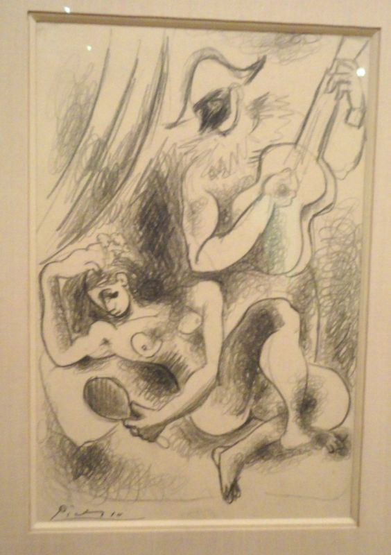 Er zit me teveel poppenkast in. Nergens een menselijke figuur die naar je toekomt. Eindeloze herhalingen van motieven. Niet nóg een harlekijn - komisch en triest tegelijk - naast 'n meisje als de schilder en z'n model. Niet wéér het Parijse uitgaansleven, de zelfkant, dat hadden Lautrec en Van Dongen al zoveel beter gedaan. En niet nóg een stier.