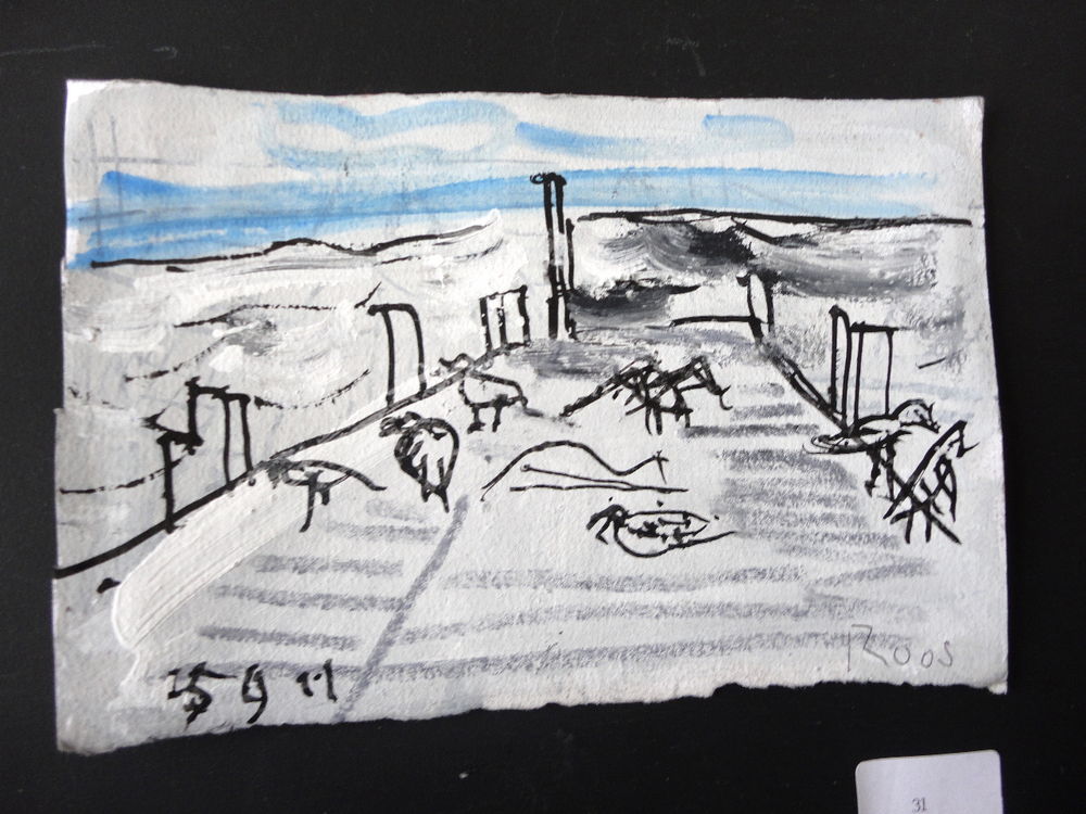 En nu exposeert Jan Roos weer, tekeningen en schilderijen, in Gorredijk, in Galerie Hoogenbosch, ook Friesland, iets meer landinwaarts. Later meer.