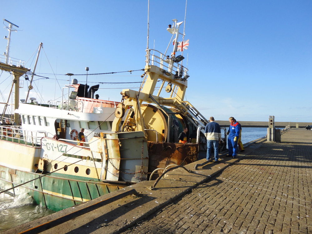 Het was een vrijdag. De dag dat de vissers binnenvaren. We gingen kijken en ik merkte hoezeer Jan Roos deel is van de Harlinger haven. Iedereen kent hem.
