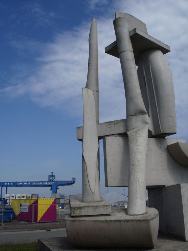 Zijn film 'Spingtij' heeft me intussen bijgeschoold in de hogere betonkunde. Goeie genade, de momenten dat het beton uit zo'n vrachtwagen gestort wordt in de grillige bekisting die het beeld van zes meter hoogte moet gaan opleveren. Het haastig bijtimmmeren en versterken.