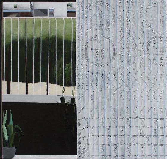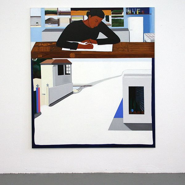 Mijn favoriete was de niet-grappige Indiase D'souza. Zij schildert preciese interieurs die uitgeven op even preciese, weidse landschappen. Met de interieurs is iets aan de hand. Ze evenaren de landschappen in leegte en netheid. Er staat niets op een vensterbank, een aanrecht, ijskast of fornuis. De indruk: deze bewoonster wil dwangmatig haar boel aan kant. Net als haar uitzicht.