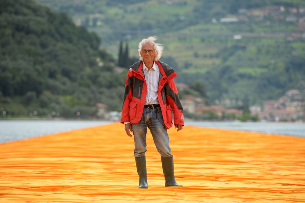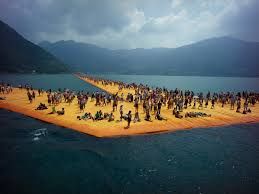 Er dreigde een storm, maar die ging liggen voor Christo het geheel moest afblazen. Er bestaat een film van een uur waarin je hem (84, geestig en erg aardig) in de weer ziet in Iseo.