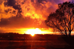 staat, groot, de zon. Voort vlieg 'k, in vreemd verlangen