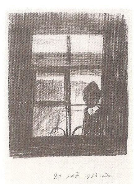 ‘Op een keer wilde Petrakov gaan slapen, maar hij ging naast het bed liggen. Hij kwam zo hard op de grond terecht dat hij bleef liggen en niet meer kon opstaan. Daarop verzamelde Petrakov zijn laatste krachten en ging op handen en voeten zitten. Maar zijn krachten begaven het en hij viel weer op zijn buik en bleef liggen. Petrakov lag een uur of vijf op de grond. Eerst lag hij daar maar zo, daarna viel hij in slaap. De slaap sterkte Petrakovs krachten. Hij werd volkomen gezond wakker, stond op, liep heen en weer door de kamer en ging voorzichtig op het bed liggen. Zo, denkt hij, nu ga ik eens even slapen. Maar slapen lukt niet meer. Petrakov wentelt zich van de ene zij op de andere en kan maar niet in slaap komen.