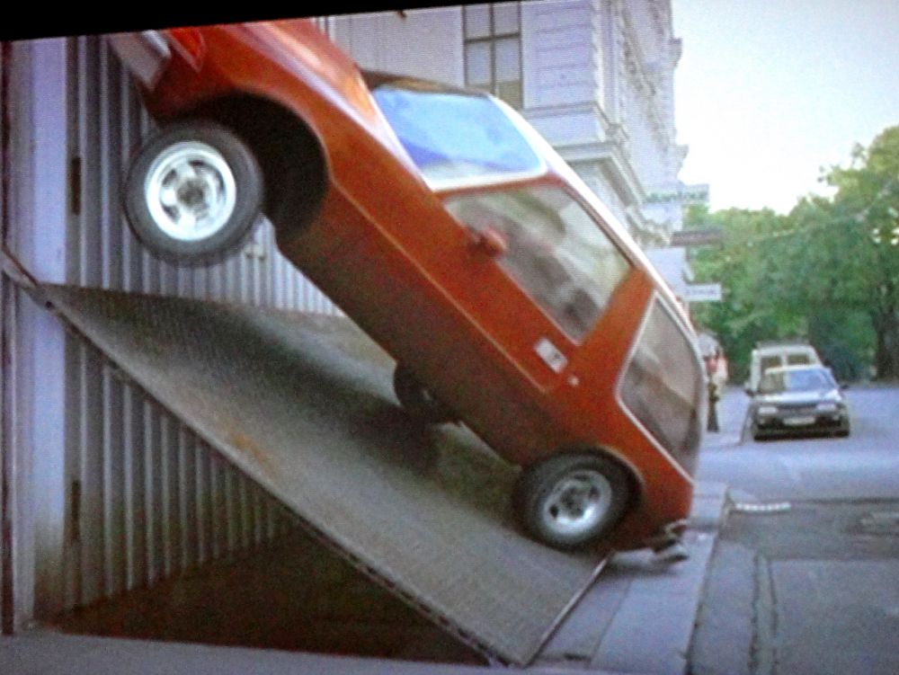 Zoals in Wurms eenminuut filmpjes, waarin een man zich van zijn stoel probeert te bevrijden of uit een kartonnen doos te ontsnappen.