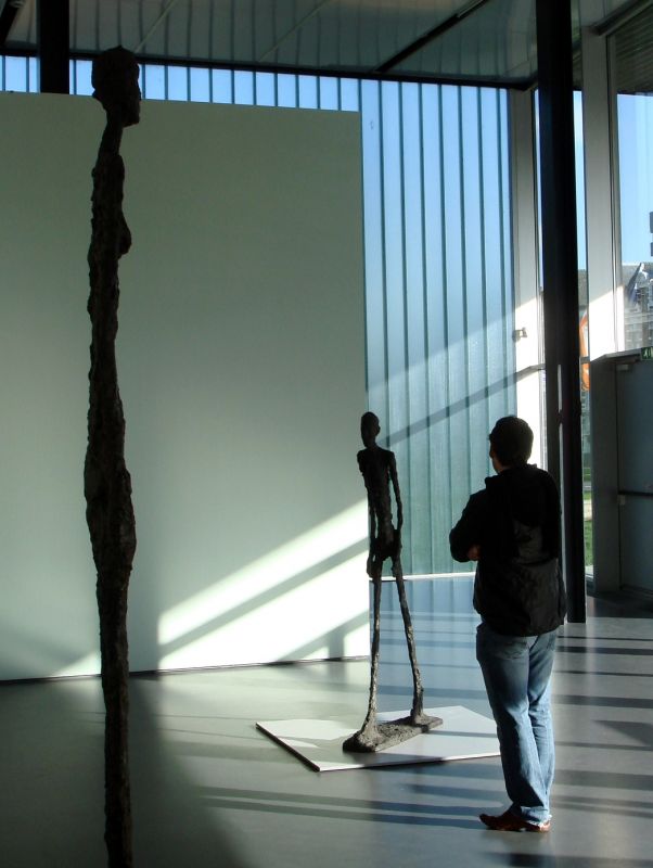 Alberto Giacometti (1901-1966) in de Kunsthal, ik moest naar Rotterdam. Koppen en figuren. In de jaren '30 was hij bevriend met de surrealist Breton. Dat liep stuk toen Giacometti terugkeerde naar de menselijke figuur en vooral het hoofd: "Want als je een hoofd 'hebt', dan heb je de rest vanzelf; zonder hoofd heb je niks."