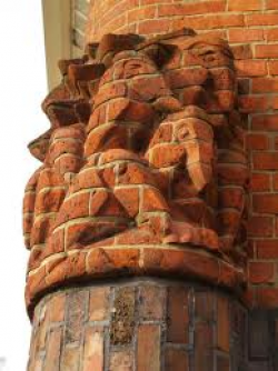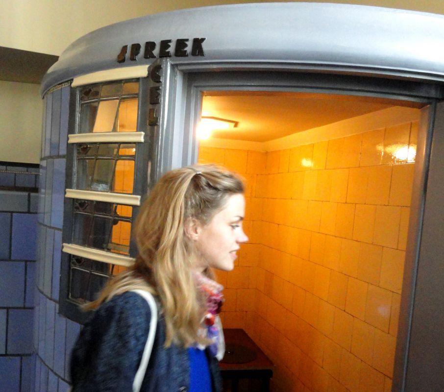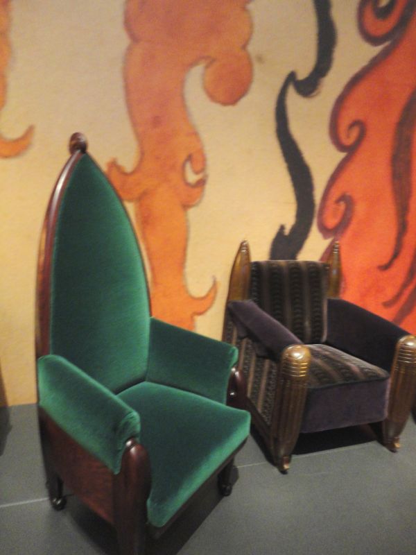 Ik blijf zoeken waar ze hun motiefjes vandaan haalden. Er zit veel seks in, alles golft. Net als in de bakstenen buitenbouw. Blob-architectuur avant-la-lettre. Met echo's van Arts & Craft, waarin niet langer de beperkingen van hout, steen en metaal de vorm bepalen maar alles z'n eigen gang gaat.