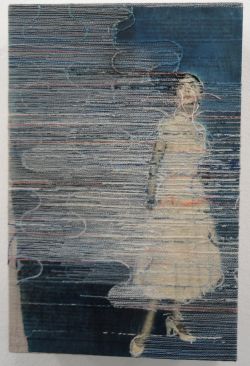 Maar ditmaal brengt ze twee series over het verdwijnen van de vrouw. Lang was ze verslaafd aan de way of life van Libelle en M­agriet, en nog. Foto's uit die bladen bewerkte ze met draden. Daar hangt prinses Margaret, maar ze wordt overwoekerd door draden. Een volgende vrouw verdwijnt in de bloemen van haar eigen jurk of de ruitjes van haar eigen jas. De draden nemen het over. Heeft Hinke genoeg van ze?
