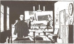 En dwingende vorm, pagina na pagina. En 'ook als ze doodloopt is de plotlijn interessant' klinkt het in het doolhof, een running gag. De gebroeders Grumbach en Groove - de barman - beleven veel, maar puzzelen vooral vlijtig over de voortgang van hun verhaal. Het Scenario zit in een impasse.