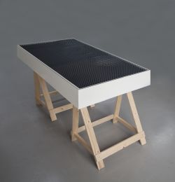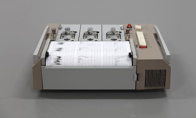 Wat hoor je nu eigenlijk op haar laagfrequente speakers? Liefst houdt ze het raadsel intact. Ze bouwde een installatie van audioschuim dat het geluid visueel uitbeeldt, ze kocht een oude Russische seismograaf die het grafisch weergeeft. Waarbij een foto van het Duitse wetenschappelijke team dat haar hielp.