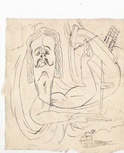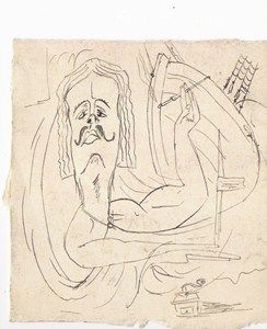 Ik was dus niet minder dan bij de goden verzeild en wel bij dezelfden van wie men op school leert. Een waarschuwing tegen het onderschatten van het onderwijs. Even later hoorde ik Athena weer spreken en een andere mannenstem antwoorden. Ik hoorde enig technisch geluid aan de buitenkant van mijn vehikel en verwonderlijk snel ging het luik, waardoor ik naar binnen gekomen was open en een man met een baard en een blauwe overall keek naar binnen. " He " zei hij, "Athena, je had gelijk, er zit een mens in". Athena keek ook naar binnen en zei toen: " Kom er maar uit, je zult wel stijf zijn". " Ik zit vast", zei ik. " Hephaitos maakt je wel los". En hij deed het. Een gemoedelijk persoon, deze goddelijke monteur. Ik kroop naar buiten en stelde mij voor. Wat had ik anders moeten doen.? Ik ben niet godsdienstig opgevoed. Ik zag dat de man in de overall mank was.