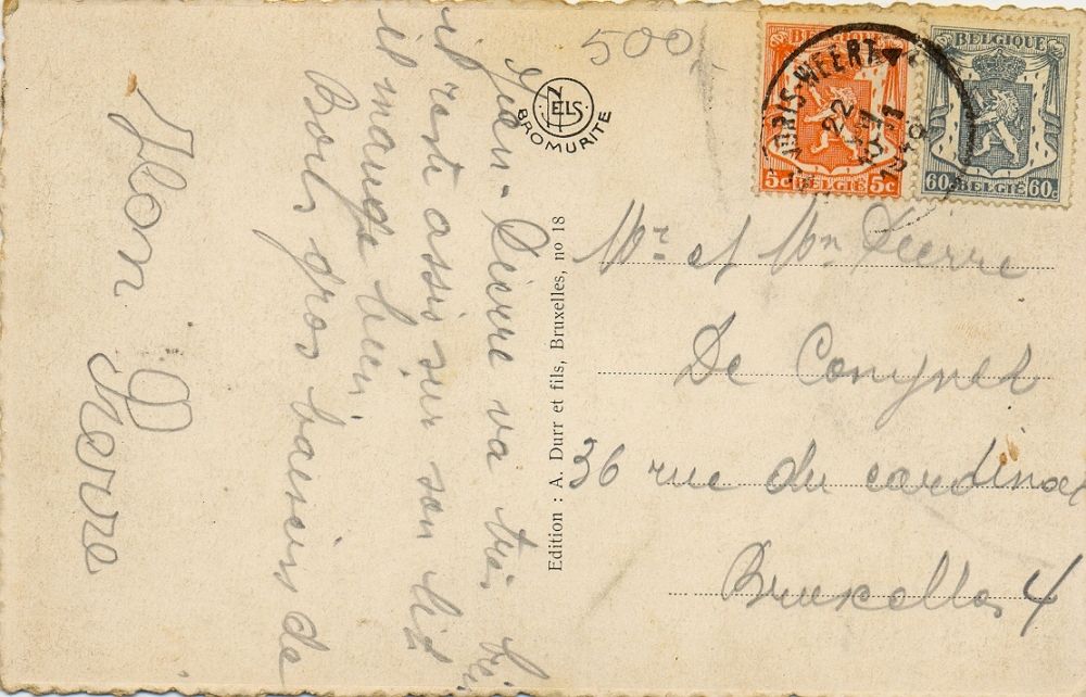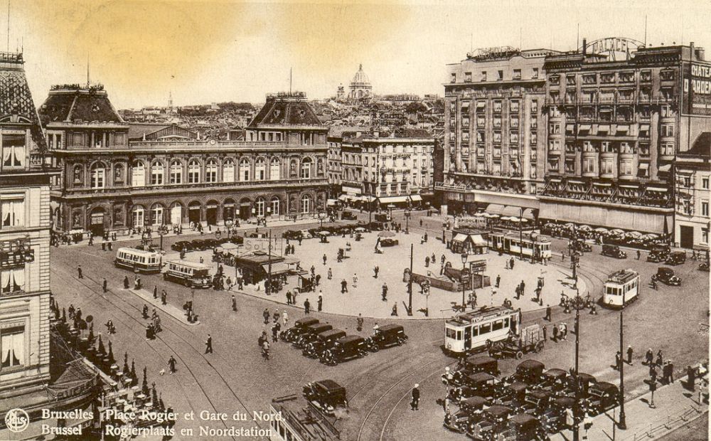 Ik liet op 4 nov. het Brusselse Hotel des Colonies zien, waar de reizigers uit de Congo logeerden die op het oude Noordstation waren aangekomen. Een kopstation aan de Place Rogier. Afgebroken toen het spoor onder de berg van Brussel werd doorgegraven naar Brussel-Zuid. Brussel verdwijnstad.In de geest van Henk vond ik een ansicht van de Place Rogier met dit station. Verstuurd in 1940, maar de kaart is ouder. De tekst aan de achterkant is geschreven door de moeder van Jean-Pierre, want schrijven kon hij nog niet. Wel heeft hij de kaart zelf ondertekend.'Jean-Pierre va très buien, ik reste assis sur son lit, ik mange bien. Bons gros baisers de ...'. Als Jean-Pierre nog leeft is hij rond de zeventig. Een kwieke heer in een jagersjas die je in de Cirio - naast de Beurs - zou kunnen tegenkomen.Nog een foto. De Rogierplaats nu. Wat over is zijn de twee hotels rechts. Met verbouwde gevels. De linker heette tot voor kort nog steeds Albert, nu is het een Hilton, de rechter heet nu Crowne Plaza.PS. De ondergrondse spoorlijn dwars door Brussel werd begonnen in 1911, de bouw lag heel lang stil, hij werd pas geopend in 1952.Jarenlang was het centrum van Brussel opgebroken, oude wijken werden gesloopt. In het prachtige ‘Vergeten straat’ (1946) van Louis Paul Boon raakt door de spoorweg een Brusselse straat aan twee kanten afgesloten van de buitenwereld en wordt ook administratief vergeten. Er onstaat daar een vreemde kleine republiek. Het boek werd in 1999 mooi verfilm door Luc Pien. Kortgeleden herhaald op Canvas.