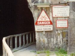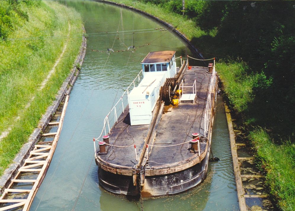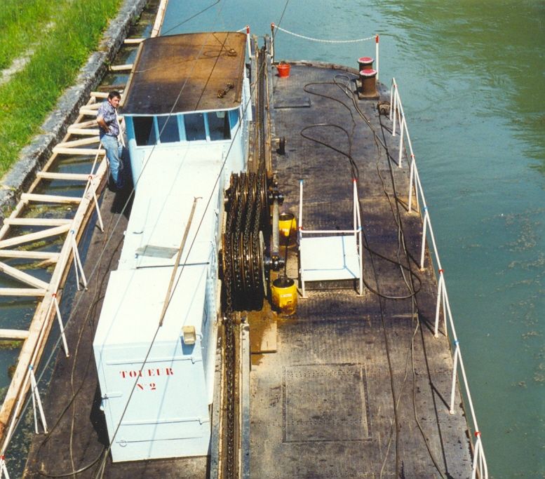 Ik zal ook niet teruggaan naar de plaats ten zuiden van Commercy, waar ik bij toeval in 1994 de ingang van een vijf kilometer lange tunnel ontdekte in het kanaal van de Marne naar de Rijn.Ik maakte foto's. En ontdekte hoe schepen er doorheen werden gesleept met een elektrische sleepboot die zich voedde uit een trolleybusachtige bovenleiding. Een systeem dat voorkomt dat de lucht in de tunnel bederft. De sleepboot - zie de foto's - trekt zich voort aan een zware ketting die op de bodem ligt. Hij vreet die ketting van voren op en poept hem van achteren als het ware weer uit. Het systeem dateert uit de Eerste Wereldoorlog, toen het kanaal van belang was voor de aanvoer van munitie naar het front bij Verdun. Vertelde de machinist op de foto. De opschriften luiden: 'ACCES INTERDIT Á TOUTE PERSONNE ÉTRANGE AU ???', dan 'TRAVERSÉE INTERDITE AU MOTEUR' en 'FILS ELECTRIQUES NUS SOUS TENSION'.Terzijde: uit Commercy komen de Madeleine koekjes, of beter cakejes, het geheugensteuntje van Marcel Proust.