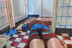 Sprak gisteren Mark Outjers van wie de paneel-schilderijen op hout nu te zien zijn in het MMKA in Arnhem. Op de mooiste plek daar, de ronde omgang boven, het zg. Gelders balkon.