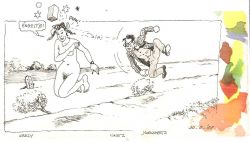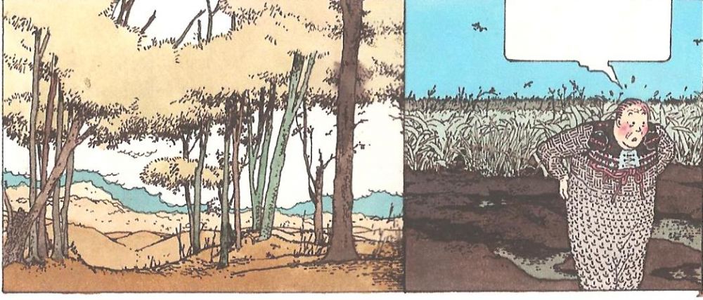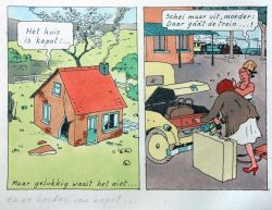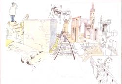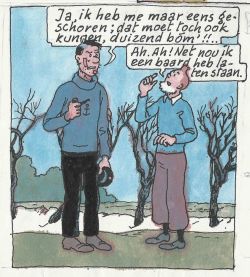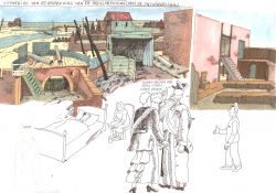 Het schetsboek, liefst onaf, fragmentarisch, met vlekken soms, zoals het in de literatuur allang bestaat opende een wereld voor hem. Landschappen ruïnes, onaffe bouwsels, personages weggelopen uit een onbekend Kuifje album. Tekstballonnen en kaders moesten het laten lijken op een stipverhaal, maar dat was het niet. 'Het moet niet te plaatsen zijn, abstract, absurd, uit de lucht gegrepen,' zei hij. Iets afmaken was iets wat wat ouders of opdrachtgevers wilden.