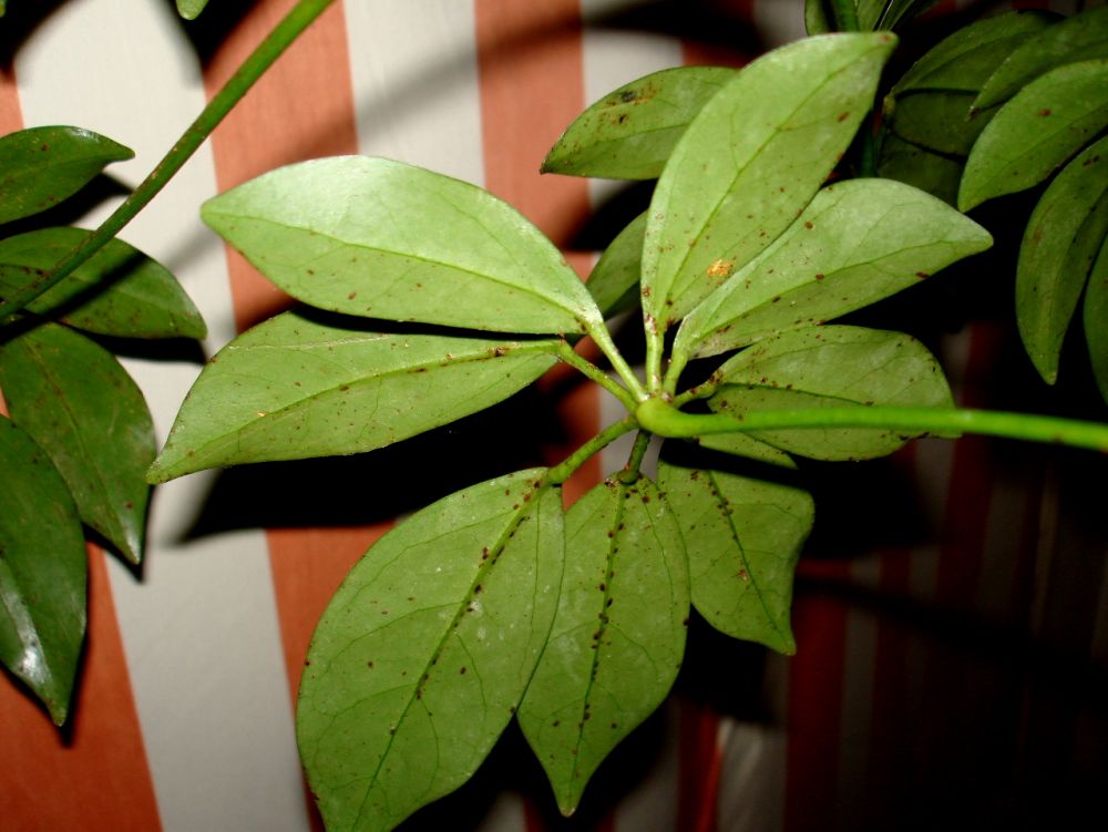 Dit is hard op weg mijn kerstverhaal te worden.De architecte en beeldend kunstenaar Sarah van Sonsbeeck trok zich het lot van mijn zieke plant aan en legde het geval voor aan een bevriende botanicus. Ze blijkt een Schefflera Actinophylla te zijn, een Australische vingerboom. En haar ziekte is dopluis. Het mengsel van zeep en spiritus was goed. De luizen gaan dood van de spiritus en hun dop wordt week van de zeep. Ook kan (met de hand, met een papiertje) de luis er van af geveegd worden (makkelijk vanwege de dopjes). 'Een nederig werkje.'