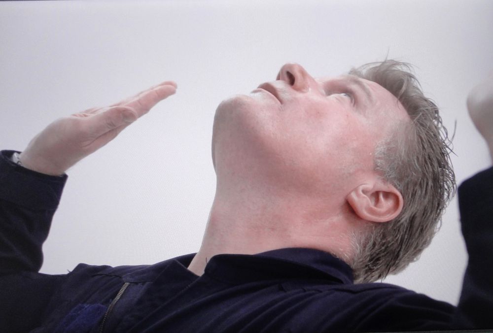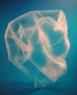 Het materiaal van Knibbeler spreekt. De lucht laat het spreken. Onze monden blazen er lucht in. Je ziet hem gefilmd op het strand, winderiger kan niet. Als speelbal van de elementen zoals dat heet.