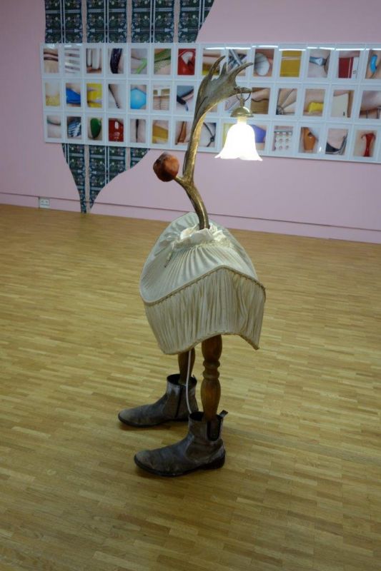 Onze huizen bevatten stapelingen van idiote voorwerpen, dat is bekend. Brinkmann stapelt ook. Hij is een nieuwe Kurt Schwitters. Maar uit zijn verzamelde troep vormen zich personages, soms met benen en handen. Die leven. Op z'n minst leeft er iets in ze.