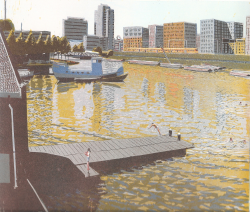 Ze kregen daar het idee om de statige behuizing te laten vastleggen. Niet door er een fotoserie van te maken, nee, het - heel letterlijk - lumineuze idee rees om Wendelien Schönfeld te vragen om een reeks kleurhoutsneden.