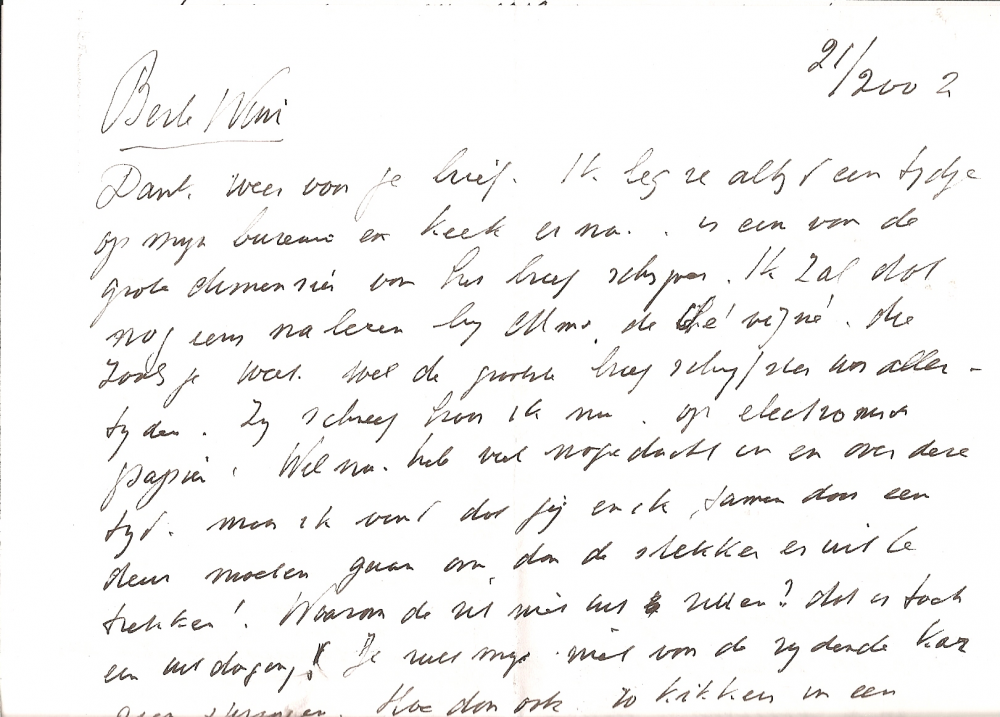 Zeer veel dank weer voor je zo fraaie brief. Ik kan me zo langzamerhand een deel voelen. Ja 'Wending' daar heb ik weet van. Het is opgehouden te bestaan toen men (per ongeluk) de herdenking der doden verwisselde met het bevrijdingsfeest. Dat kwam het nummer zeer ten goede. Bernlef zat niet in de redactie.. zat nooit in een redactie, heette ook geen Bernlef! en zelfs dat niet.