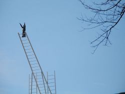 Was dit nu 450 meter? vraagt Wim. Nergens een afslag te bekennen. De hond zit muisstil achterin. Het wordt nu tijd Monique te bellen. Alles gaat immers goed. Alleen geen afslag. En zo rijden we - net als ieder jaar ‑ het centrum van Goor binnen, belanden op een erfje en moeten terug. Maar waarheen? Het hondenpension wordt gebeld dat we iets later komen, of ze dan nog open zijn?
