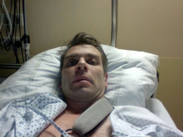 Er zal een tweede operatie komen. Herrnhof moet nu terug naar de aanmeldingsbalie, dan naar cardiologie. 'Op nog ongeveer vijf verdere plaatsen naam, leeftijd, lengte, gewicht en eerdere resultaten. Twee uur wachttijd voor de anesthesie, we staken juist.'